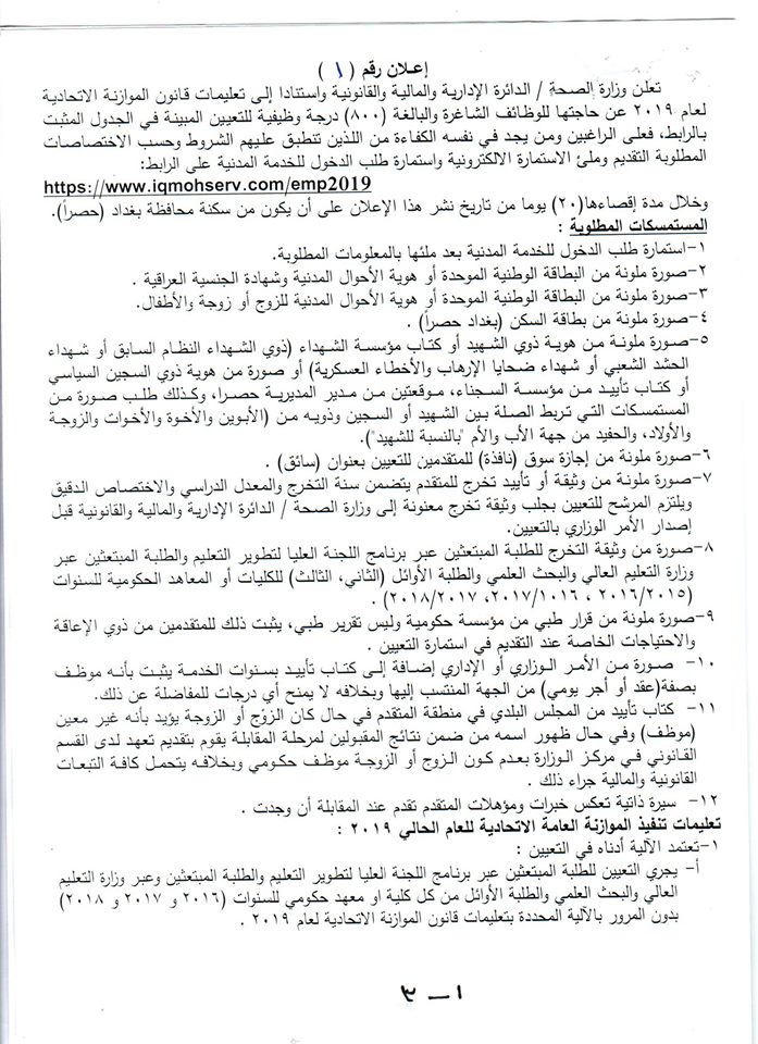 عاجل فتح باب التعيينات على ملاك وزارة الصحة 2019 موقع تعيينات العراق